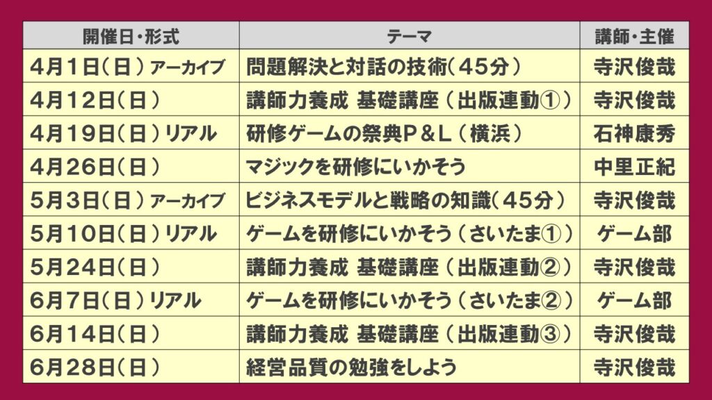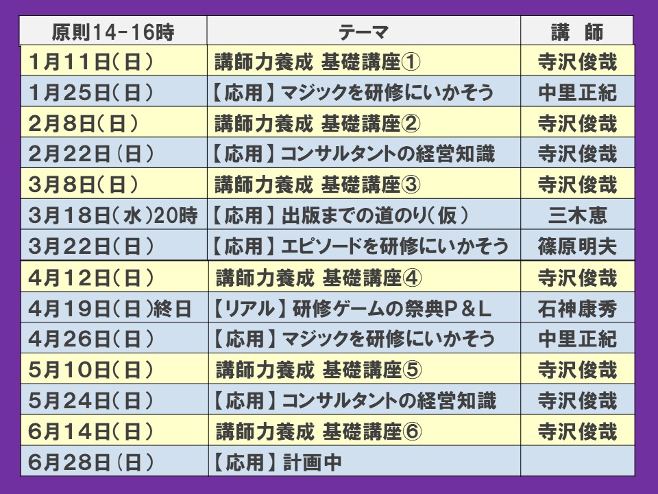 *この他、つど開催されるセミナーは、会員限定メルマガでご連絡します。これからのセミナー(原則第2.4日曜)