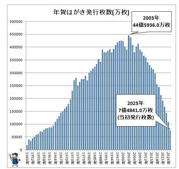 2004年がピーク!増加スピードよりも減少スピードが激しい「年賀はがき」 2026 01/18 Published 2026.01.18 / Tera \ この記事を共有 / B! リンクをコピーする 2004年がピーク!増加スピードよりも減少スピードが激しい「年賀はがき」 Tera B! リンクをコピーする 壊滅的!です。 7億枚。 2019年に下記のデータを示して危機感を感じていたのですが・・・ 現在はさらに。。。 このグラフは、どんな社会情勢を代弁しているのでしょうか。 ネットの普及、 コミュニケーション習慣の変化、 家族関係の変化、、、?